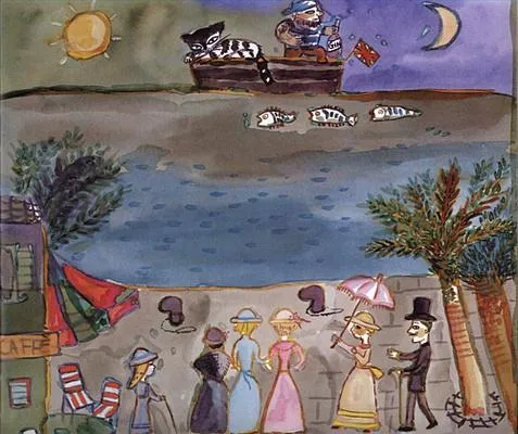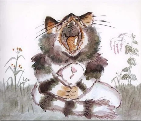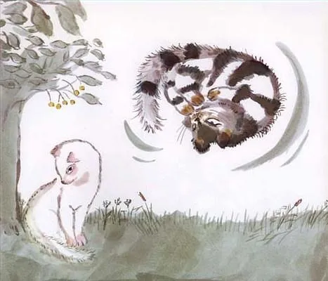 这本绘本中的插画都很漂亮,要说我最喜欢哪一张,那就是最后虎斑猫抱着白猫痛哭的那张,我既替他难过,又为他开心,一种复杂的心情交织着,让自己的眼泪也止不住。难过的是,再美好的事物也终有结束的一天,不管我们做什么努力,有些事情终究是无法改变的;开心的是,找寻到自己活着的意义比什么都重要,在爱里出生,又在爱里死亡,即使我在痛哭,但为了失去的爱而痛哭,何尝不是一种幸福。最后一幅插画位于整本书的背面,当我们看完整本书合上书的时候,能看到他们两个肩并肩看着远方的背影,是那么的温馨,安静,携手一生,最后在爱中为自己的生命画上完美的句点。